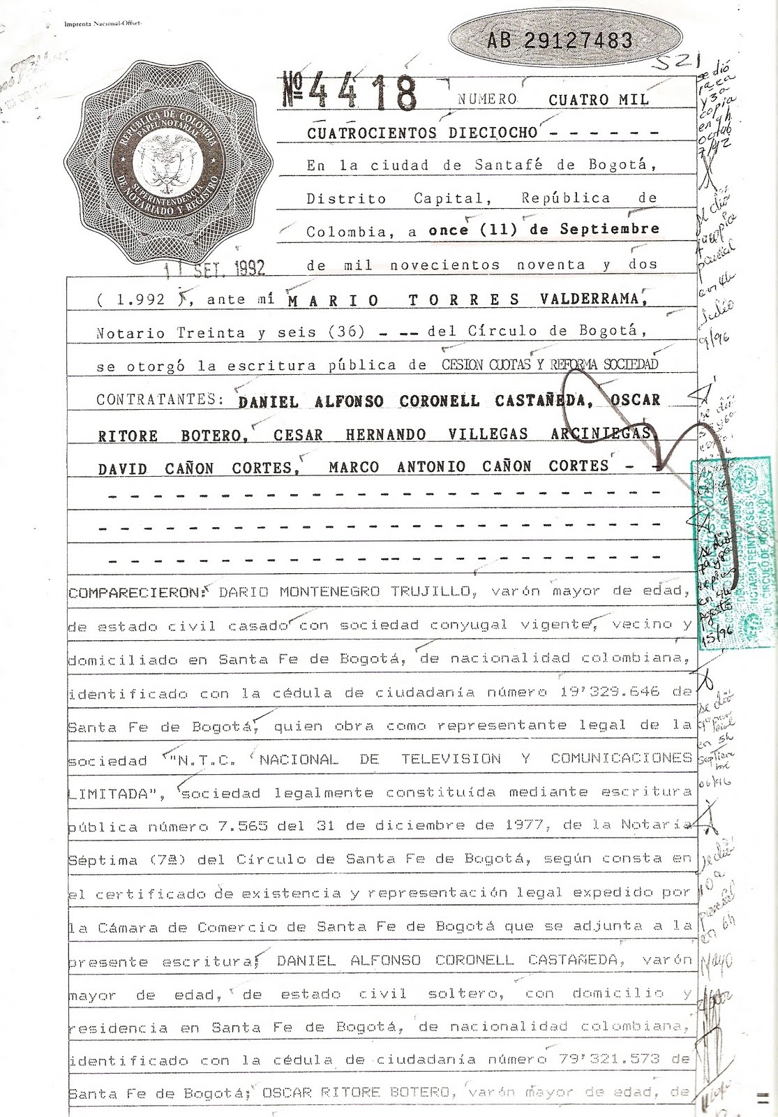 Escuché en la oficina del fallecido César Villegas, «El Bandi», que le hablaba a su jefe Gilberto Rodríguez, patrón del Cartel de Cali, sobre su sociedad en NTC con Coronell: «No Don Gilberto, Daniel no es amigo de Uribe, tranquilo» y además le comentaba que ya tenía la bendición del gobierno de Gaviria y contaba con otros socios importantes.