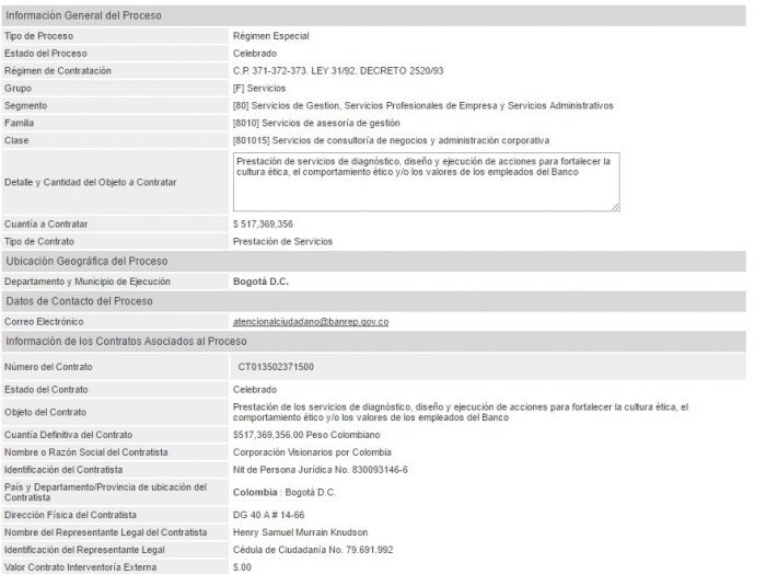 El Banco de la República, bajo el mando de José Darío Uribe, firmó en diciembre 11 de 2015 un contrato por $517.369.369 dirigido a fortalecer la cultura y el comportamiento ético y valores de los empleados de la entidad bancaria estatal.