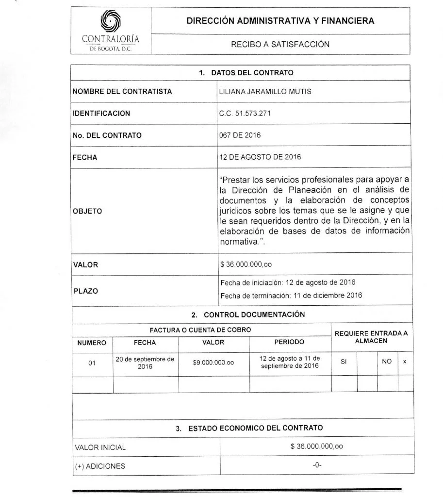Estos son los contratos de la señora Jaramillo en la Contraloría de Bogotá: