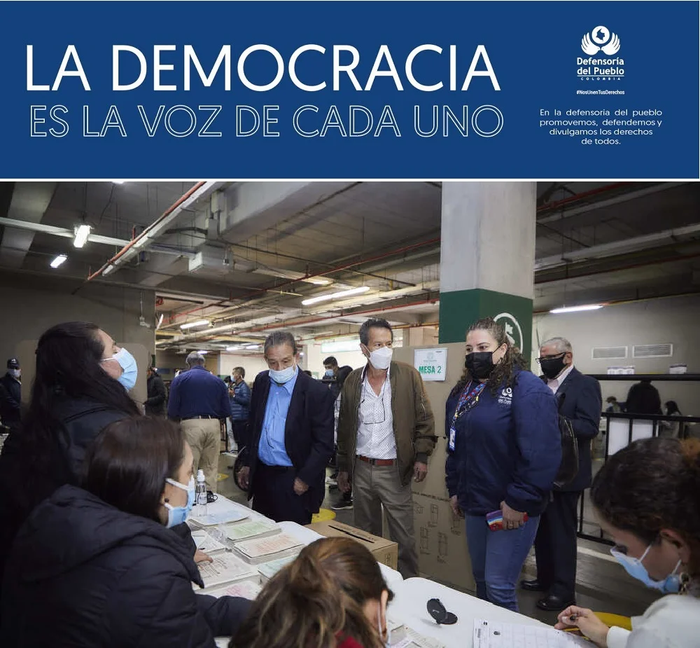 Indicó que en coordinación con la Procuraduría General de la Nación, ente que instaló una mesa de trabajo para garantizar el orden público el día de las elecciones, y las Personerías de Colombia, la institución nacional de derechos humanos acompaña una serie de acciones en todas las regiones del país.